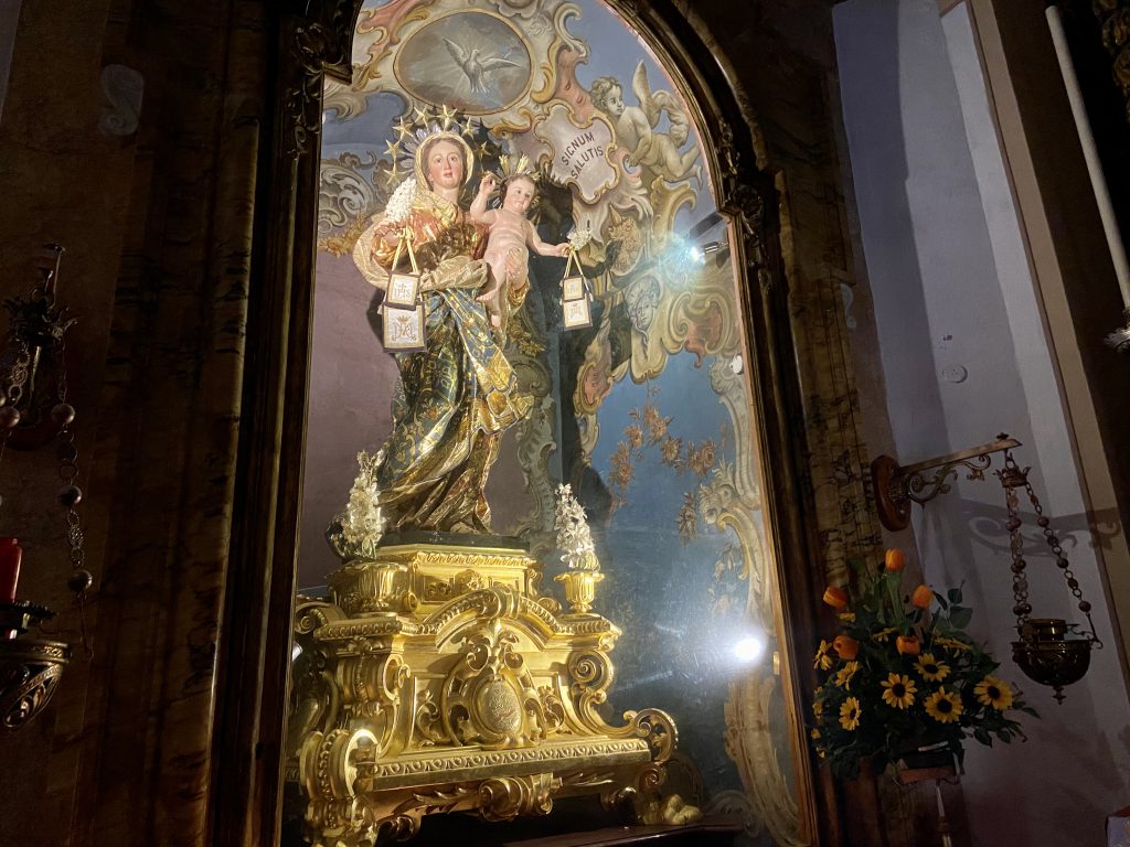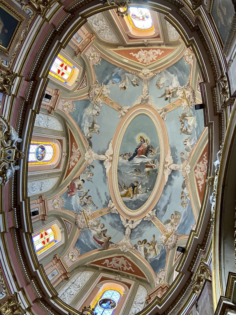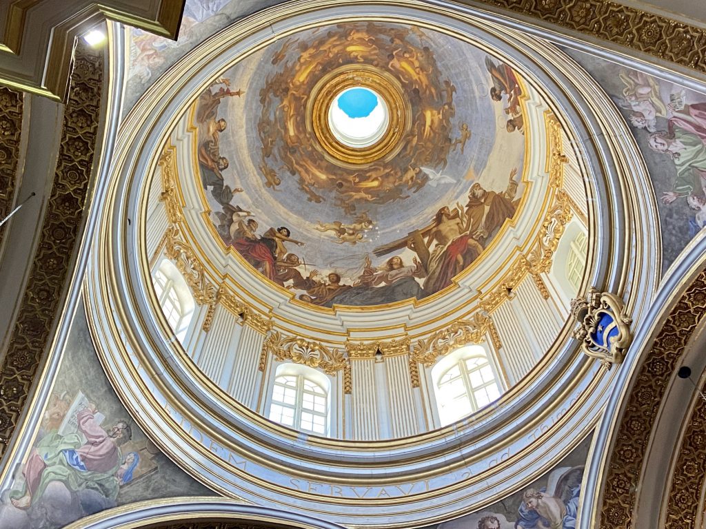祭壇の天井はドーム型になっていて、天井画が美しいです。