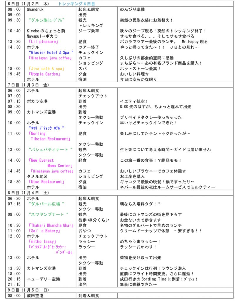 Happy Treksの社長Mr. Happy とメールをやりとりして、日程は以下になりました。