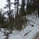 雪が残っている森の中を進みます。